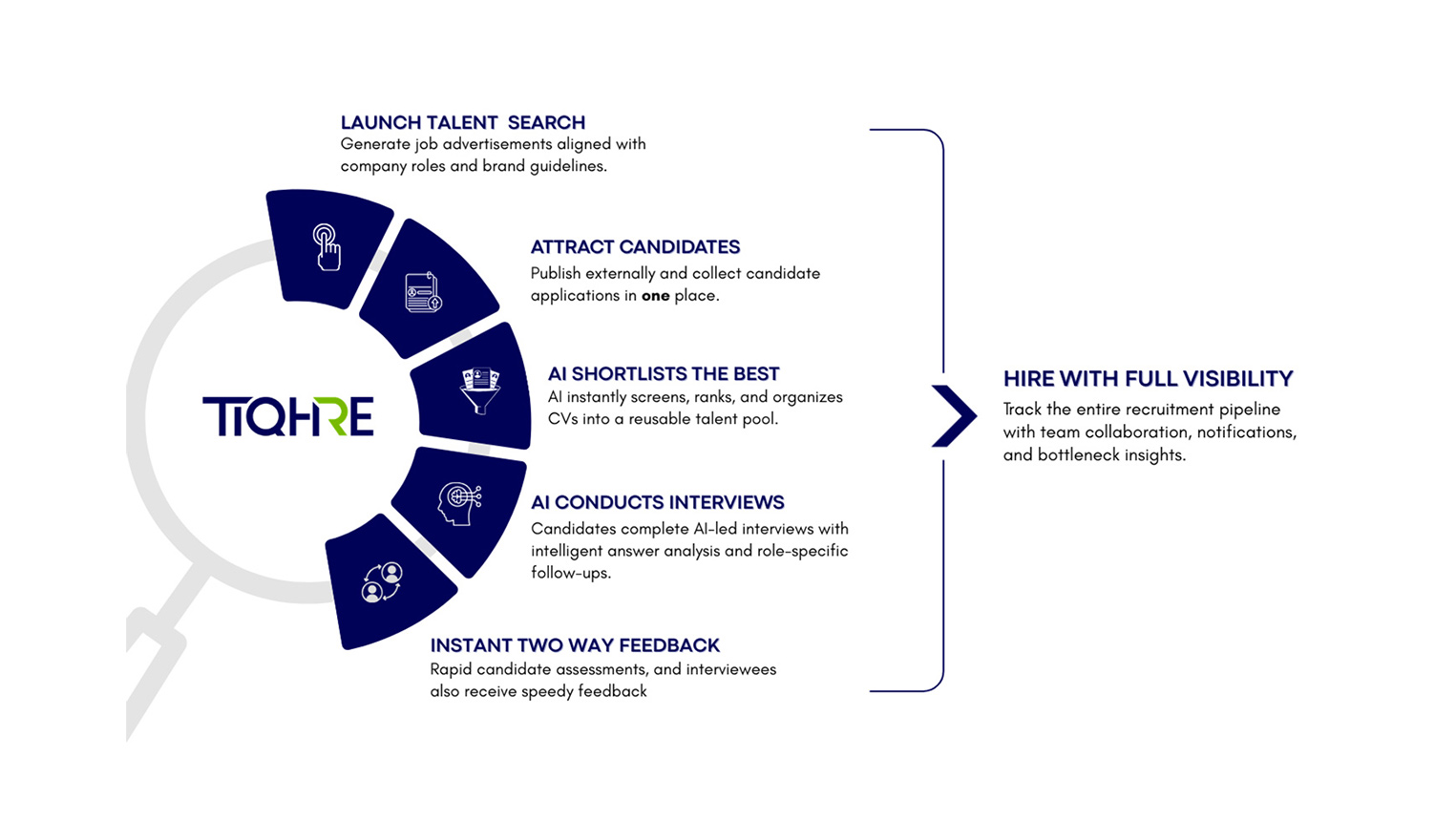 Al conducts interviews, analyzes candidate responses, and asks intelligent follow-up questions.